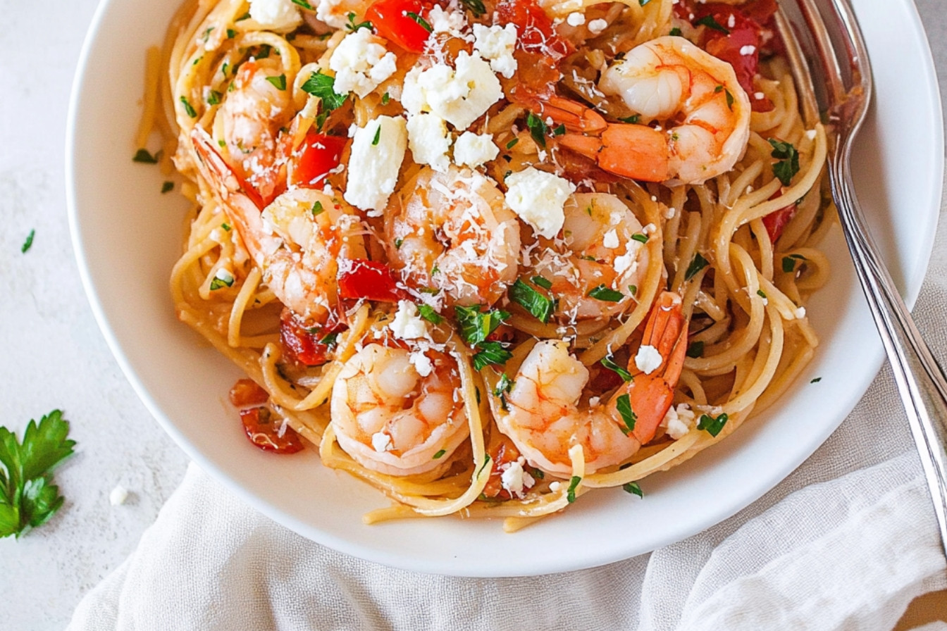 Pâtes aux crevettes grecques