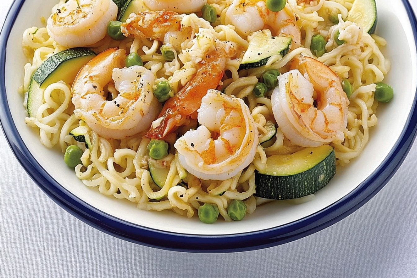 Ramen aux crevettes et courgettes