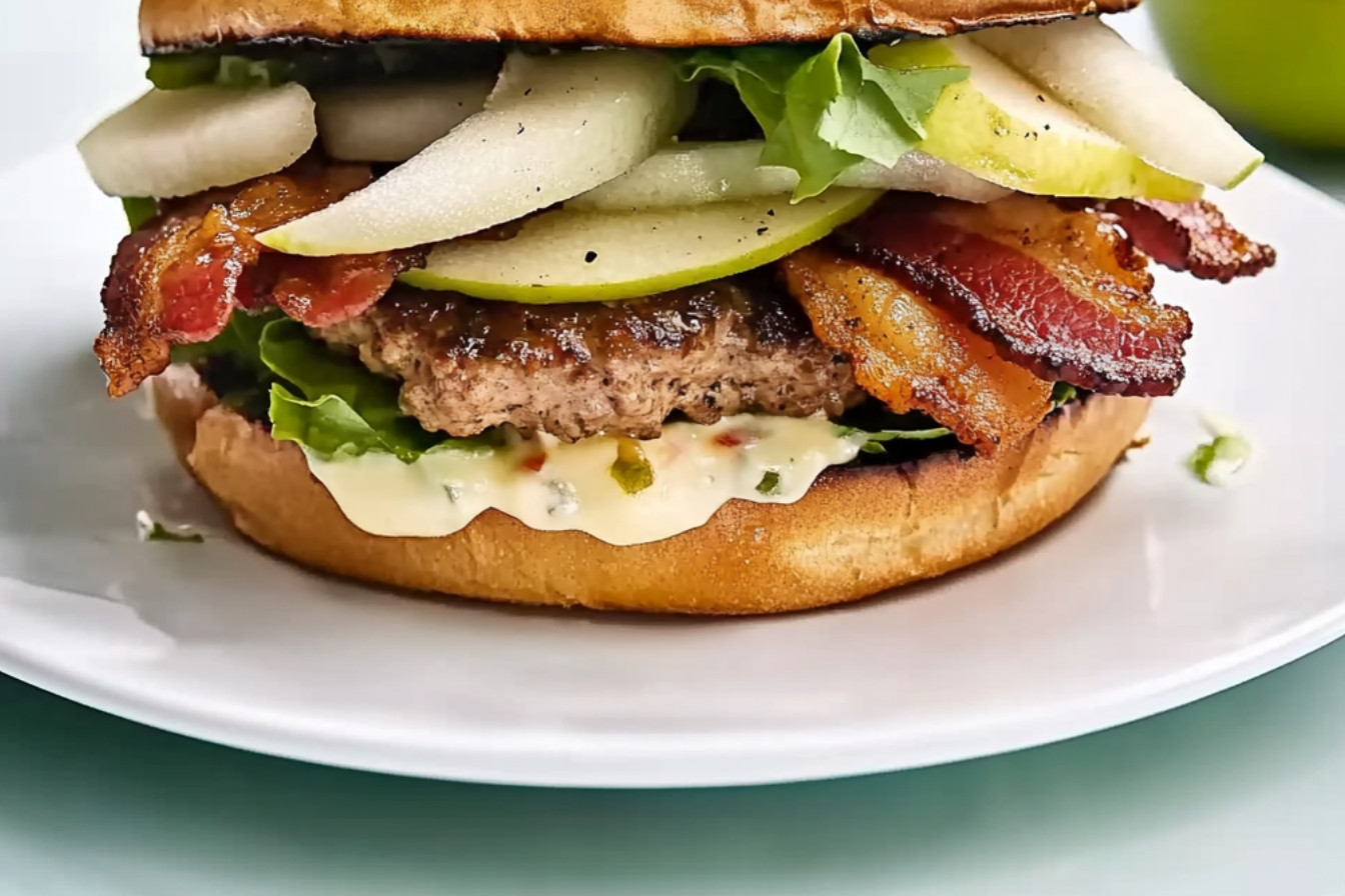 Burger au bœuf, pomme et bacon