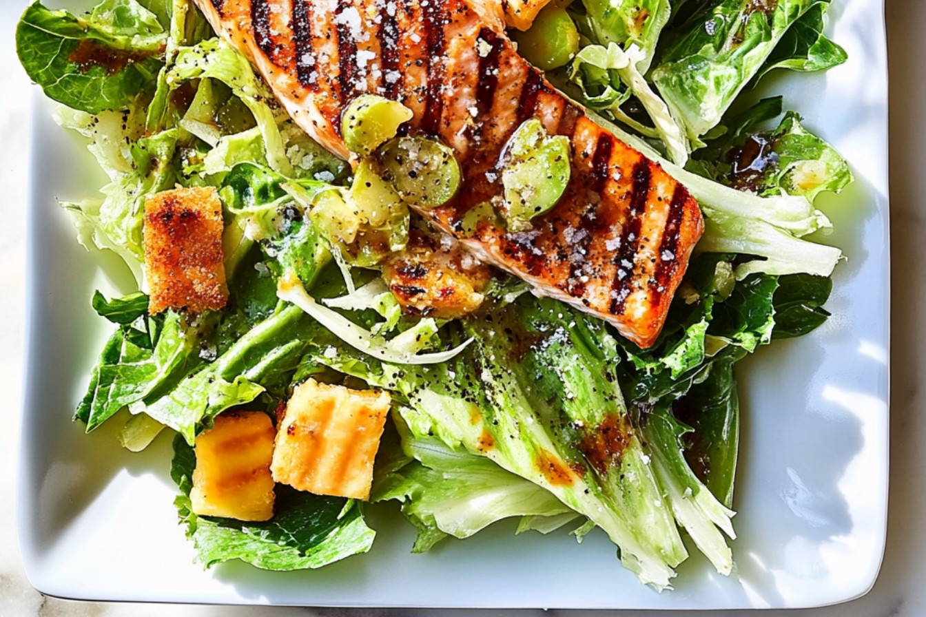Saumon grillé et salade romaine