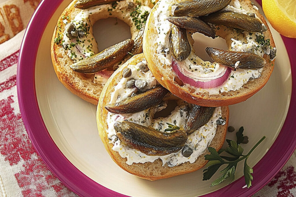 Le bagel aux sardines, fromage à la crème et câpres est une recette savoureuse, rapide et facile à réaliser. Parfait pour un déjeuner léger ou un en-cas nutritif, ce plat combine des saveurs marines avec la richesse du fromage à la crème et le piquant des câpres. C’est une excellente façon d’intégrer des produits de la mer dans votre alimentation tout en profitant d’un repas délicieux en seulement quelques minutes.