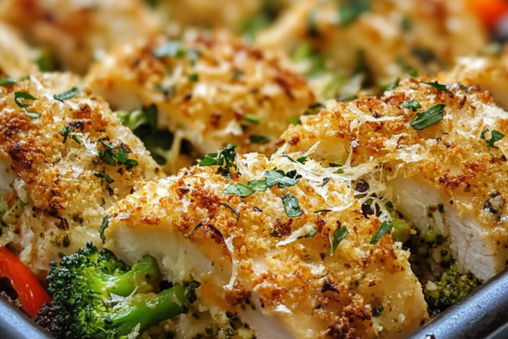 Préchauffez votre four à 200 °C (390 °F). Lavez et découpez le brocoli en petits bouquets. Épépinez et coupez les poivrons en dés. Coupez les filets de poulet en morceaux de taille uniforme.