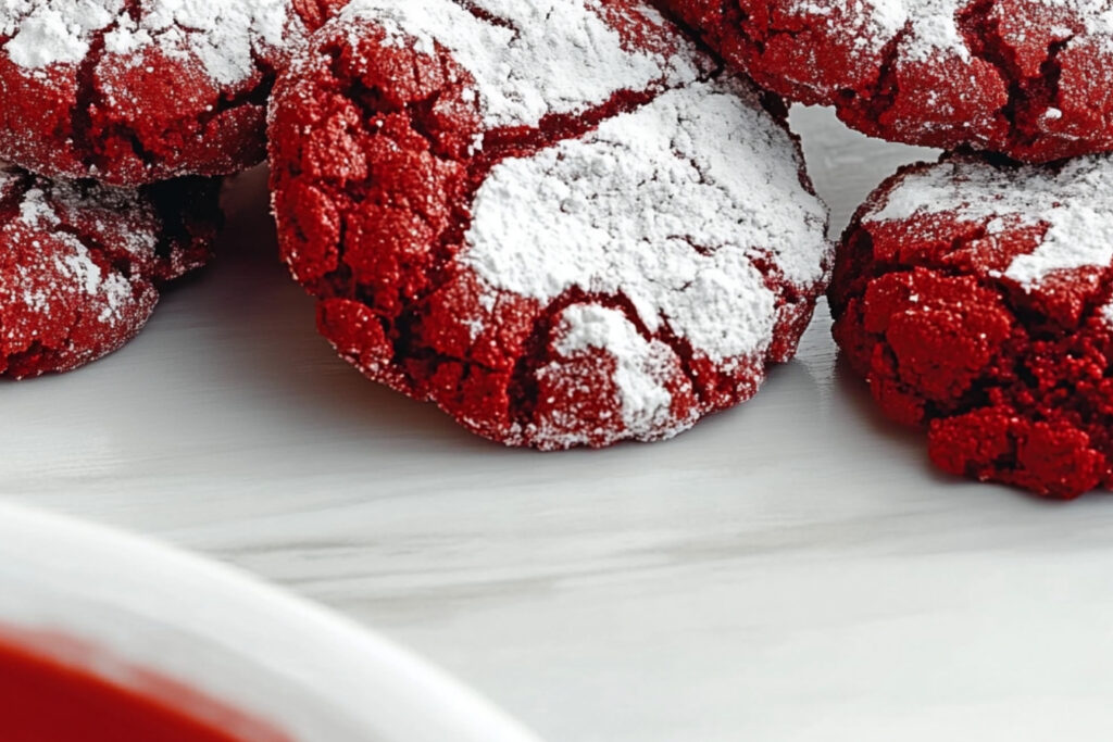 Les biscuits craquelés red velvet sont une délicieuse variante des célèbres gâteaux red velvet. Leur texture fondante et leur goût riche en chocolat associée à la douceur de la vanille en font une gourmandise incontournable. Que ce soit pour une occasion spéciale ou simplement pour se faire plaisir, cette recette facile et rapide séduira à coup sûr vos convives.