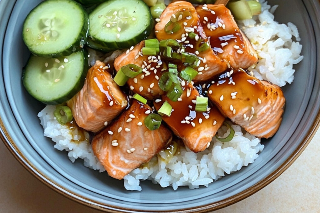 Oui, vous pouvez cuisiner le saumon et le riz à l’avance. Gardez-les dans des récipients hermétiques au réfrigérateur, puis assemblez le bol juste avant de servir.