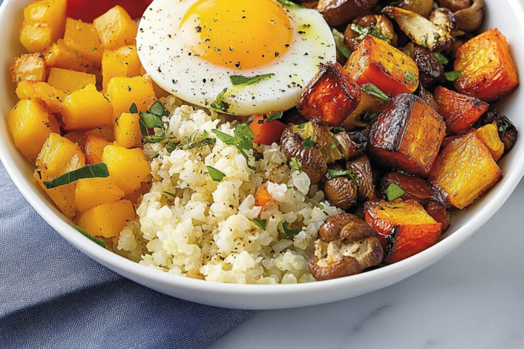 Le bol aux œufs mollets, légumes rôtis et riz de chou-fleur est une délicieuse et nutritive option de repas qui allie saveurs et textures. Facile à préparer en seulement 15 minutes, ce plat est parfait pour ceux qui cherchent à équilibrer leur alimentation sans compromettre le goût. Vous pourrez profiter d’un mélange de couleurs et de nutriments tout en savourant la richesse des œufs parfaitement cuits.