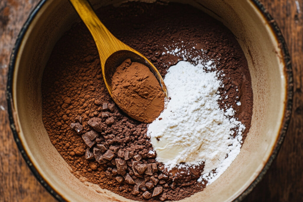 Divisez la pâte en deux. Dans une moitié, ajoutez le cacao en poudre et mélangez bien.
