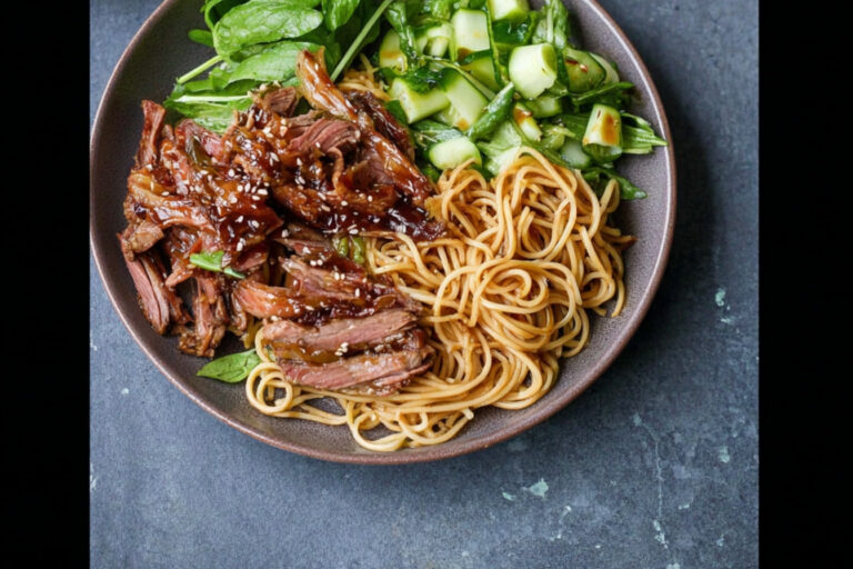 Introduction Les nouilles de canard hoisin sont un plat savoureux