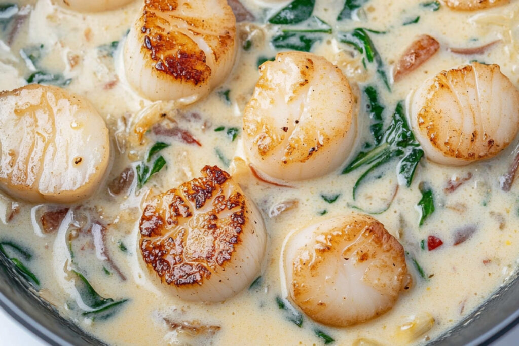 Les scallops in cream sauce, ou coquilles Saint-Jacques dans une sauce crémeuse, sont un plat délicieux et sophistiqué qui ravira vos invités. Avec leur texture tendre et leur saveur délicate, ces coquilles se marient parfaitement avec une sauce onctueuse à la crème, ce qui en fait un choix idéal pour un dîner spécial ou un repas de semaine réconfortant.
