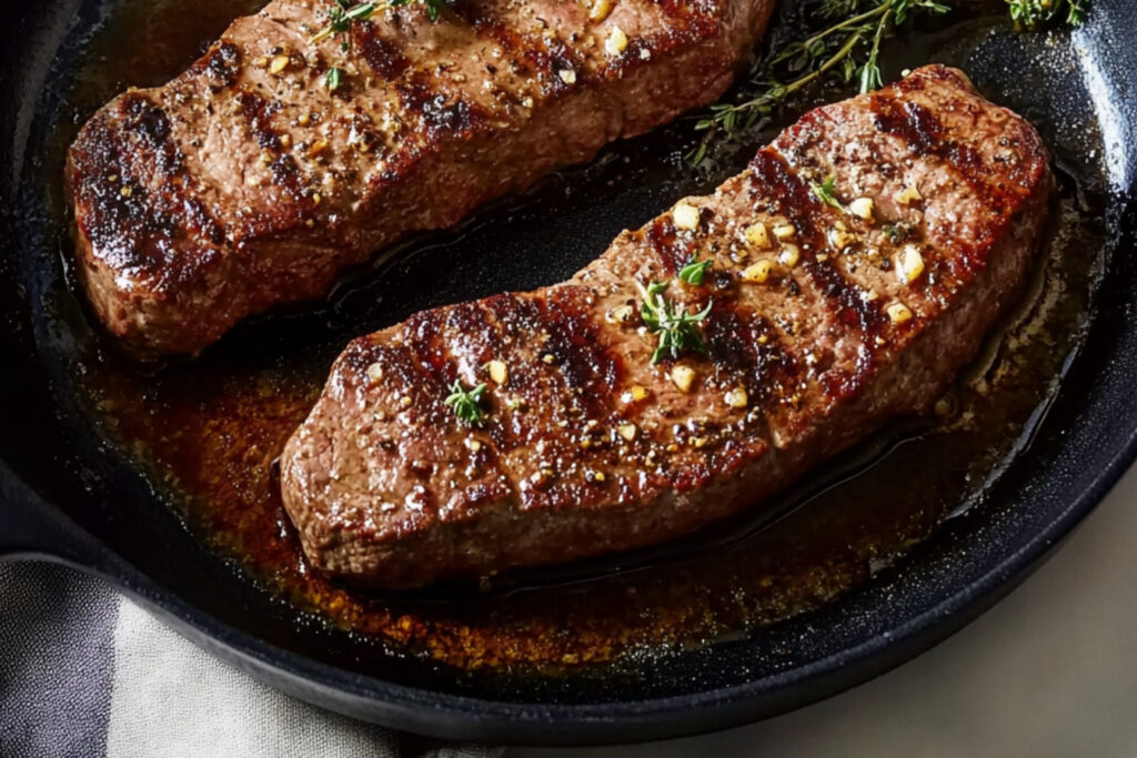 Utilisez une poêle en fonte pour saisir le steak, ce qui aide à créer une croûte savoureuse.
