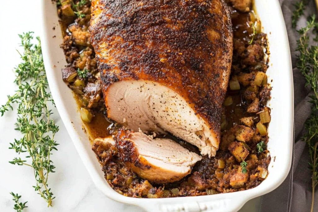 La poitrine de dinde cajun cuite au four avec la farce est une merveilleuse option pour un repas savoureux et réconfortant. Grâce à ses épices cajun, elle apporte une touche audacieuse qui ravira vos invités. Servez-la avec des accompagnements traditionnels pour un repas complet et satisfaisant.