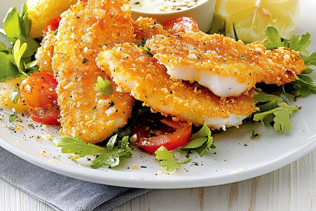 Cuisson des filetsFaites chauffer de l’huile dans une poêle à feu moyen. Une fois l’huile chaude, disposez les filets panés et faites-les cuire environ 3 à 4 minutes de chaque côté jusqu’à ce qu’ils soient dorés. |