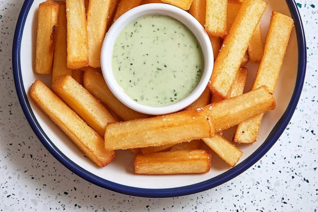 Servez vos frites de yuca avec une sauce à base de mayonnaise et de citron pour une expérience rafraîchissante.