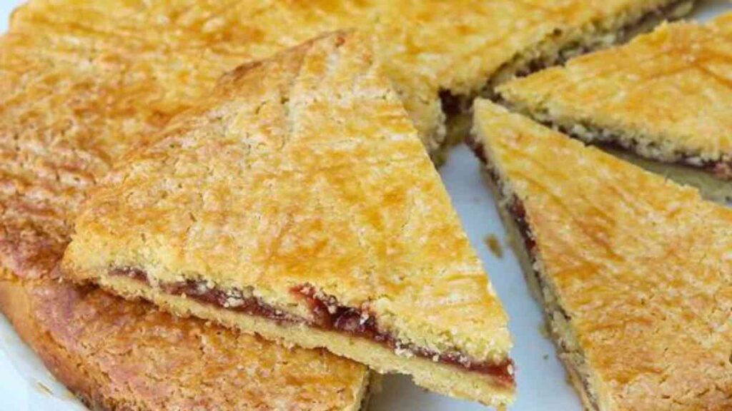 7. Étalez l’autre moitié de la pâte et placez-la sur la confiture.