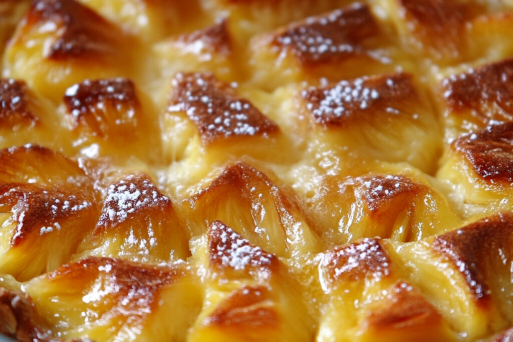 Dans une poêle, faites fondre 100 g de sucre à feu doux jusqu’à obtenir un caramel doré. Ajoutez les rondelles d’ananas et laissez cuire pendant 2-3 minutes jusqu’à ce qu’elles soient bien enrobées et légèrement dorées.