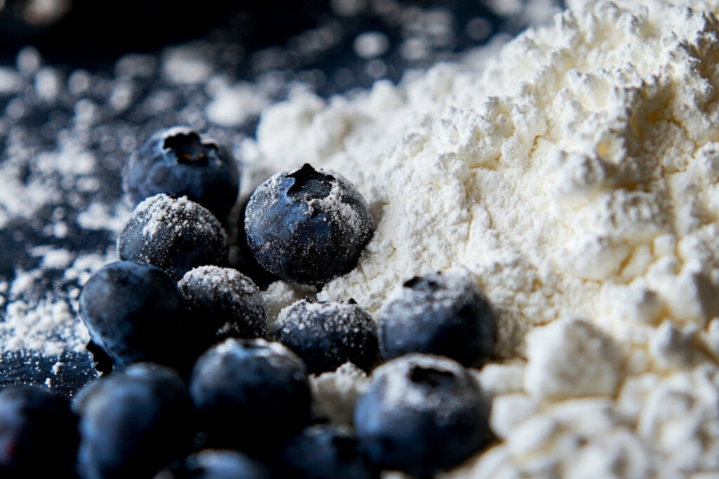 Pendant que la pâte repose, laver les bleuets et les égoutter. Dans un bol, mélanger les bleuets avec un peu de sucre et de la farine pour les enrober légèrement.