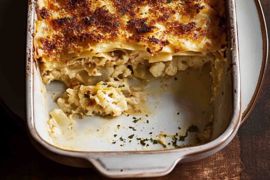 Cette lasagne de chou-fleur au fromage est un plat réconfortant et savoureux, idéal pour les soirées familiales ou les repas entre amis. Sa texture crémeuse et ses saveurs riches en font une alternative délicieuse aux lasagnes traditionnelles. N’hésitez pas à l’adapter selon vos goûts et à expérimenter avec les ingrédients pour créer votre propre version unique.