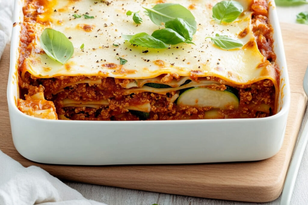 Une lasagne aux légumes grillés apporte une touche méditerranéenne avec des courgettes, des poivrons et des aubergines.