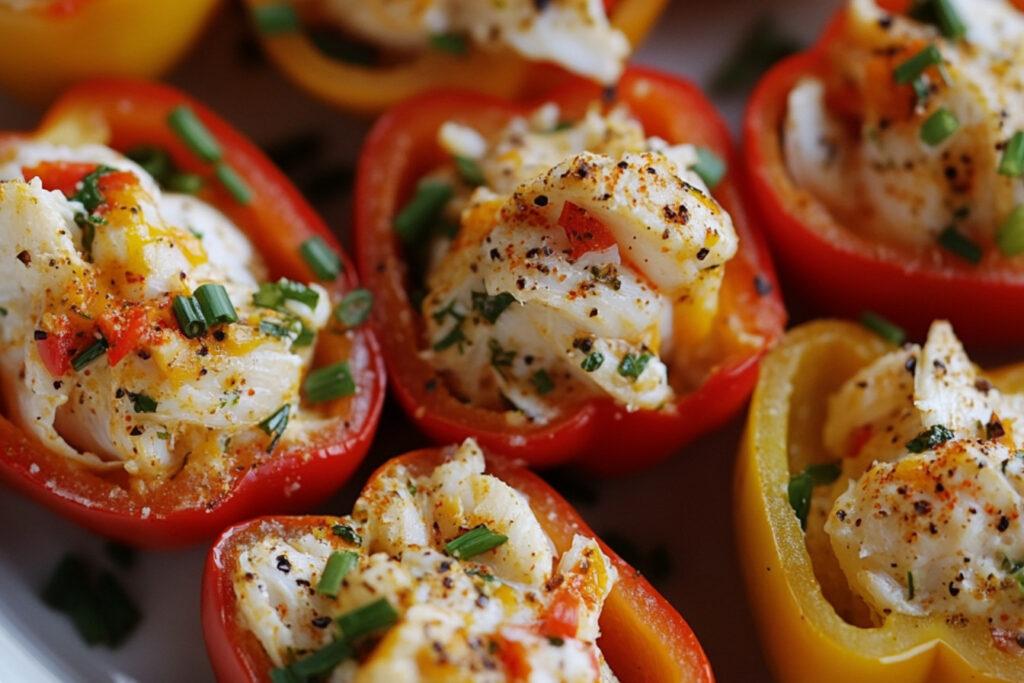 Les mini poivrons farcis au crabe sont une délicieuse idée apéritive qui séduira vos invités. Faciles à préparer et très savoureuses, ces bouchées colorées allient la douceur des poivrons à la richesse du crabe, offrant ainsi une explosion de saveurs en bouche. Parfaites pour un repas léger ou un apéritif, ces petites merveilles mettent en valeur les produits de la mer tout en restant simple à réaliser.