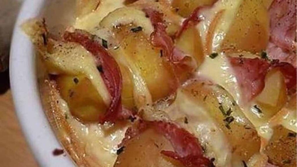 Mettre au fond de votre plat une couche de lardons fumés, puis recouvrir de fromage à raclette.
