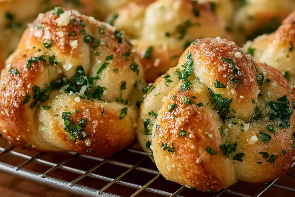 Étape 5 : Préparation de l’ail et cuissonPréchauffer le four à 200°C (400°F). Pendant ce temps, mélanger l’ail émincé avec du beurre fondu et du persil. Badigeonner les nœuds avec ce mélange avant de les mettre au four. |