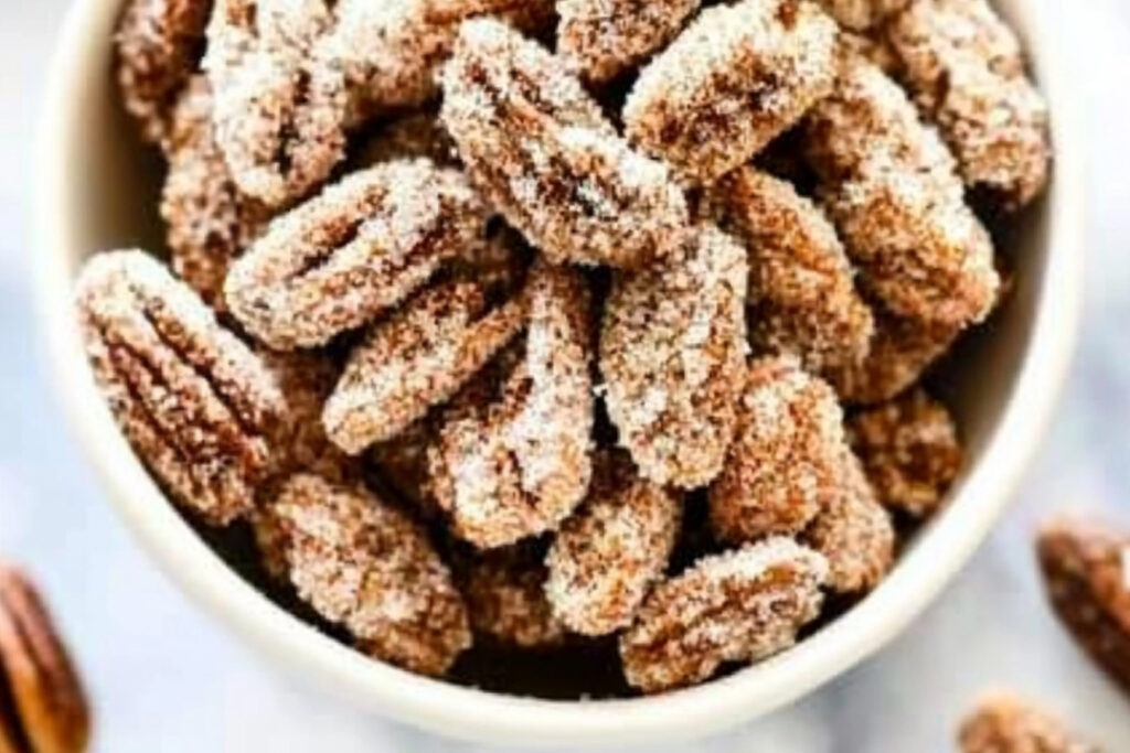 Les noix de pécan sucrées et à la cannelle sont un en-cas délicieux et irrésistible qui peut ajouter une touche sucrée à vos plats ou simplement satisfaire vos envies de grignotage. Ces noix sont croustillantes, parfumées et faciles à préparer, parfaites pour des occasions spéciales ou simplement pour se faire plaisir à la maison.