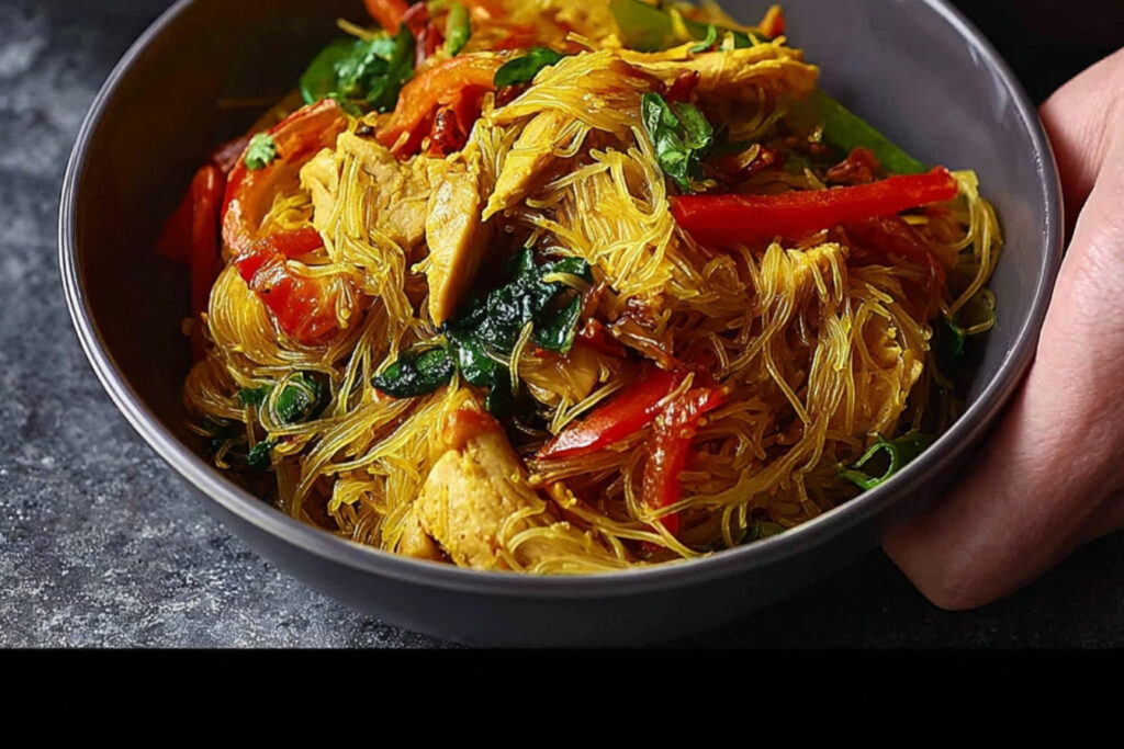 Les vermicelles de Singapour avec du poulet sont un plat savoureux qui combine des nouilles légères et délicates avec des morceaux de poulet juteux et des légumes croquants. Ce plat parfumé est parfait pour un dîner rapide en semaine ou pour impressionner vos invités lors d’une occasion spéciale. Avec des épices aromatiques, il apporte un goût unique et une expérience culinaire à chaque bouchée.