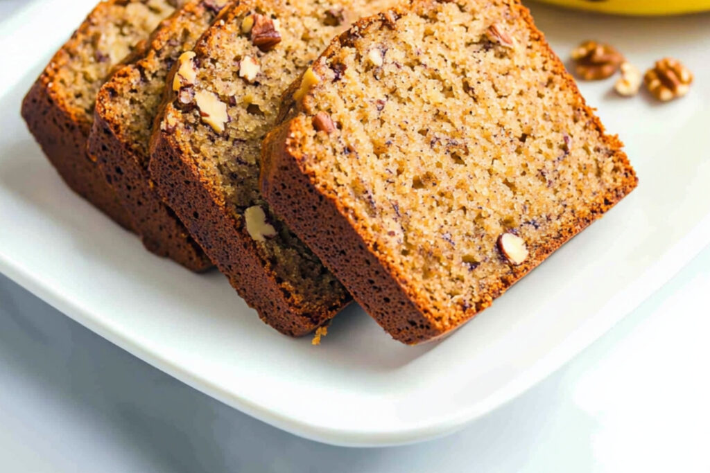 Servez des tranches de pain à la banane avec du yaourt nature pour un petit-déjeuner nourrissant et équilibré.