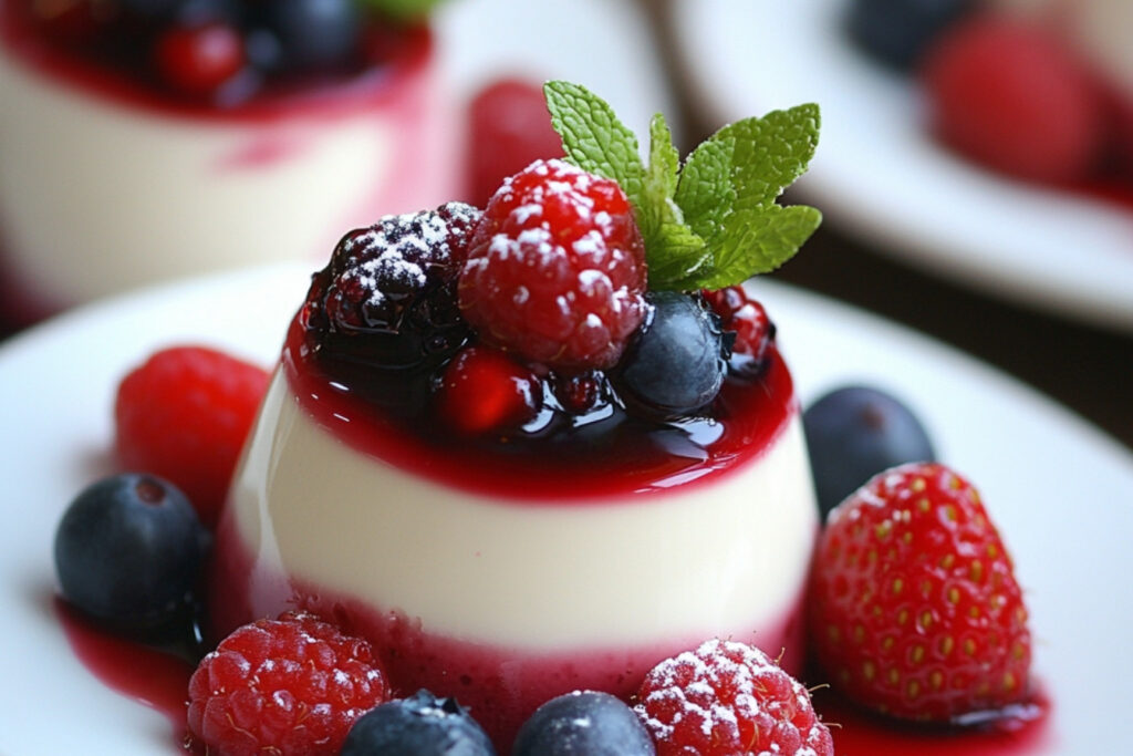 La panna cotta aux fruits rouges est un dessert italien délicat et crémeux qui ravira vos papilles. Son goût doux et sa texture veloutée se marient parfaitement avec l’acidité des fruits rouges, créant une harmonie de saveurs irrésistible. Idéale pour terminer un repas en beauté, cette recette est également simple à réaliser.