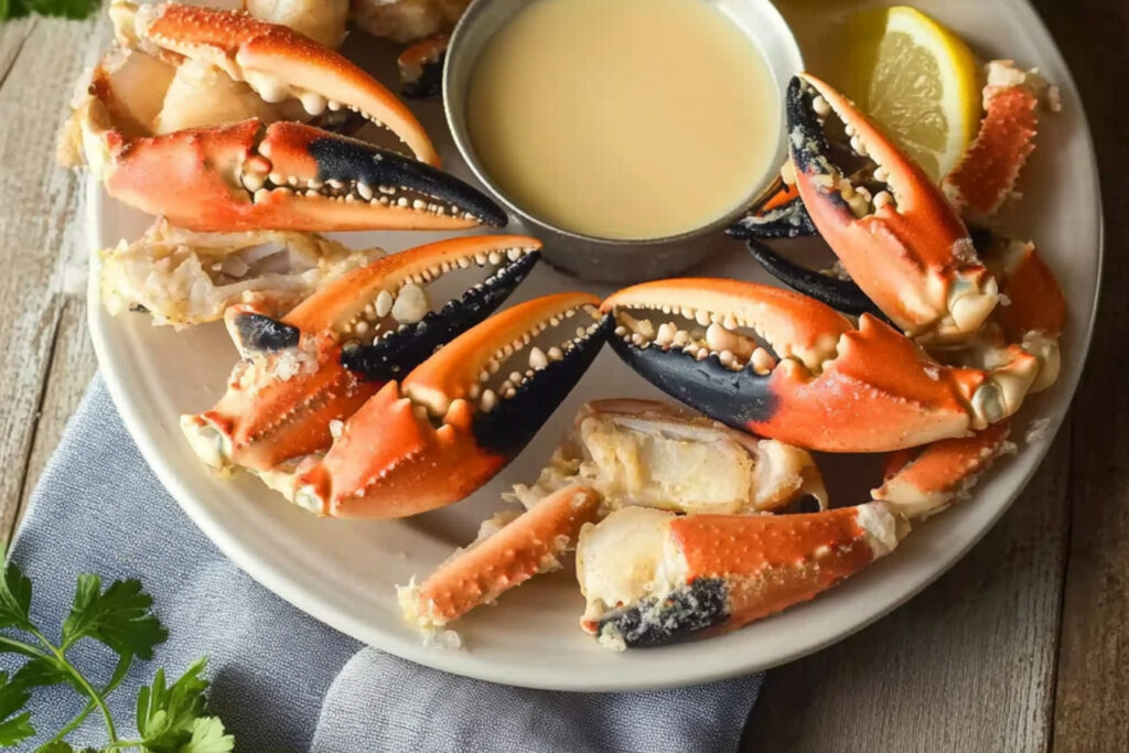 Les pinces de crabe de pierre se marient bien avec du beurre fondu, du citron, et divers assaisonnements comme de l’ail et des herbes.