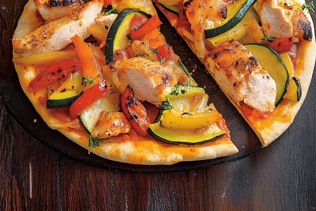 Ces pizzas sont non seulement rapides à préparer, mais elles offrent également une excellente option pour une soirée barbecue ou un repas en famille. Profitez de la combinaison savoureuse du poulet, des légumes grillés et du fromage fondant sur une base de pâte croustillante. Bon appétit !