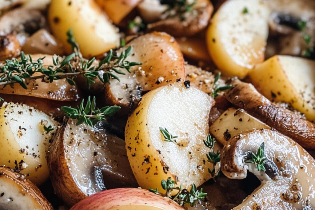 Incorporez les dés de pommes aux champignons. Continuez de cuire en mélangeant pendant environ 5 à 7 minutes, jusqu’à ce que les pommes soient tendres.