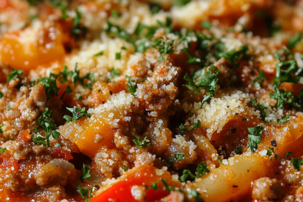 4. Ajoutez la viande hachée, le paprika, le sel et le poivre, puis laissez cuire jusqu’à ce que la viande soit bien cuite.