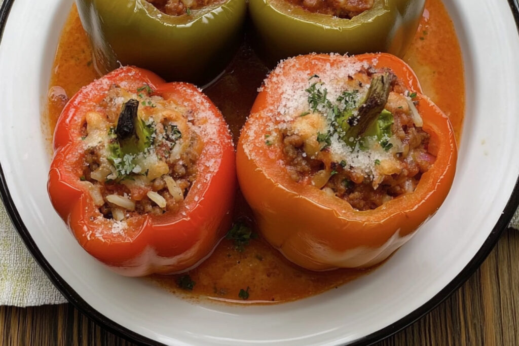 Le passage sous le grill en fin de cuisson permet d’obtenir une croûte dorée et croustillante sur le dessus des poivrons farcis, ajoutant une texture agréable.