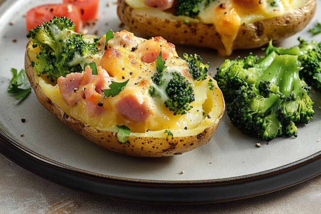 Les pommes de terre farcies au jambon et brocoli constituent un plat savoureux et réconfortant, parfait pour un repas en famille. Elles sont non seulement délicieuses, mais aussi nutritives, offrant une belle combinaison de saveurs et de textures. Ce plat peut facilement être adapté selon vos goûts, ce qui en fait une belle option pour varier les plaisirs.