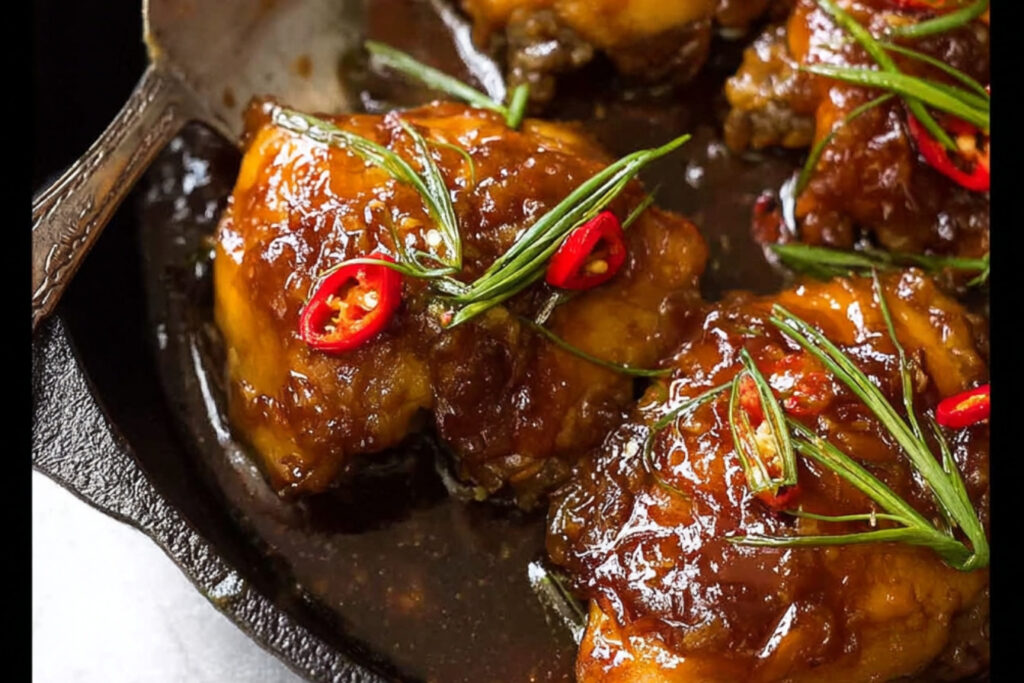 Accompagnez le poulet caramélisé de riz pour absorber la délicieuse sauce et compléter le plat.