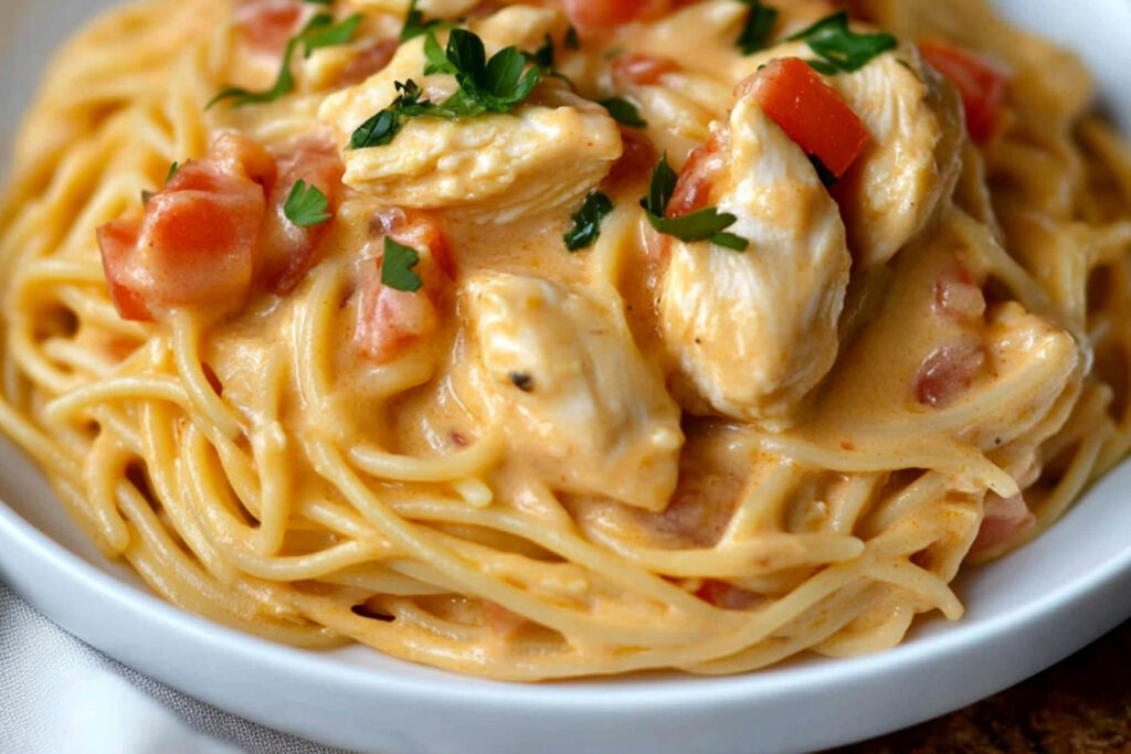 Le poulet spaghetti avec Rotel est une recette savoureuse et facile à préparer, idéale pour les repas en famille ou entre amis. Avec ses saveurs délicieuses et réconfortantes, elle allie le poulet tendre à une sauce crémeuse et épicée, le tout enveloppé de spaghetti. Ce plat est parfait pour ceux qui cherchent à explorer de nouvelles recettes tout en restant dans le cadre de la cuisine traditionnelle.