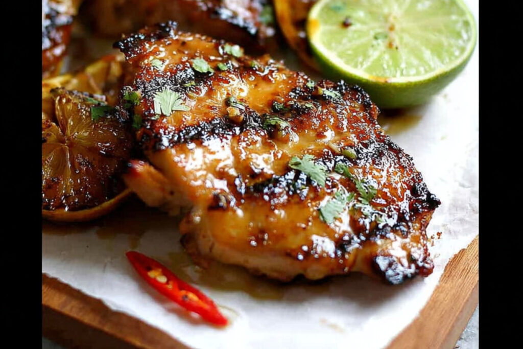 7. Servez le poulet grillé avec des quartiers de citron vert et, si désiré, une sauce de votre choix.