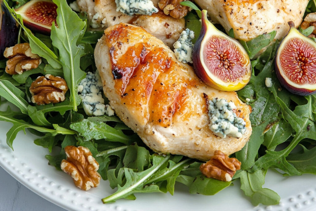 Une salade de roquette avec des flocons de parmesan et des noix grillées apportera une touche de croquant et un excellent contraste de saveurs avec le poulet et les figues.