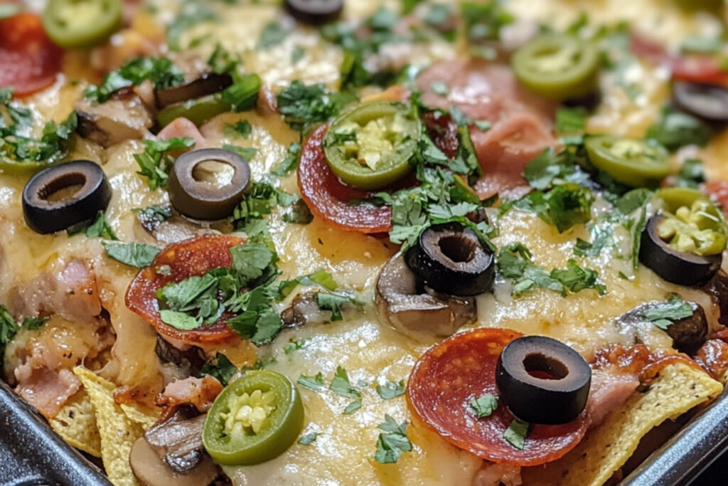Retirez le plat du four et ajoutez les garnitures de votre choix, comme des jalapeños, des oignons verts, ou de la salsa.