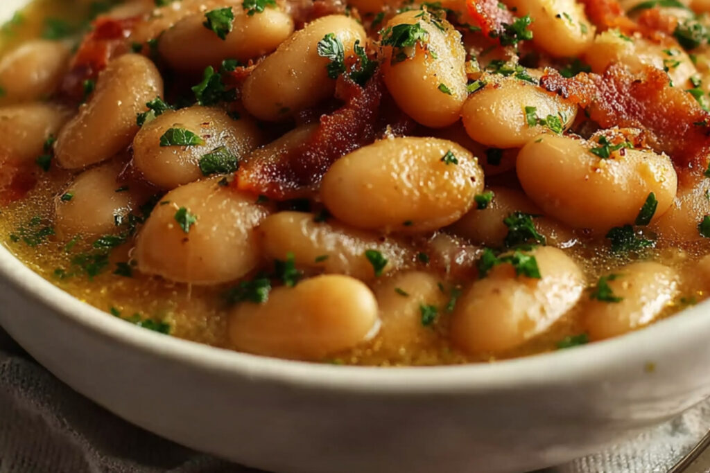 Les haricots au beurre peuvent être agrémentés de légumes sautés ou d’herbes fraîches pour plus de saveur.