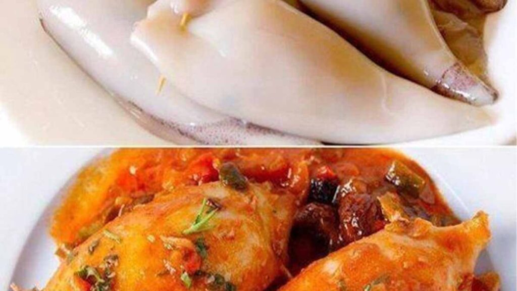 1. Nettoyez les calmars en retirant les parties dures et en lavant l’intérieur soigneusement. Réservez les tentacules pour la farce.
