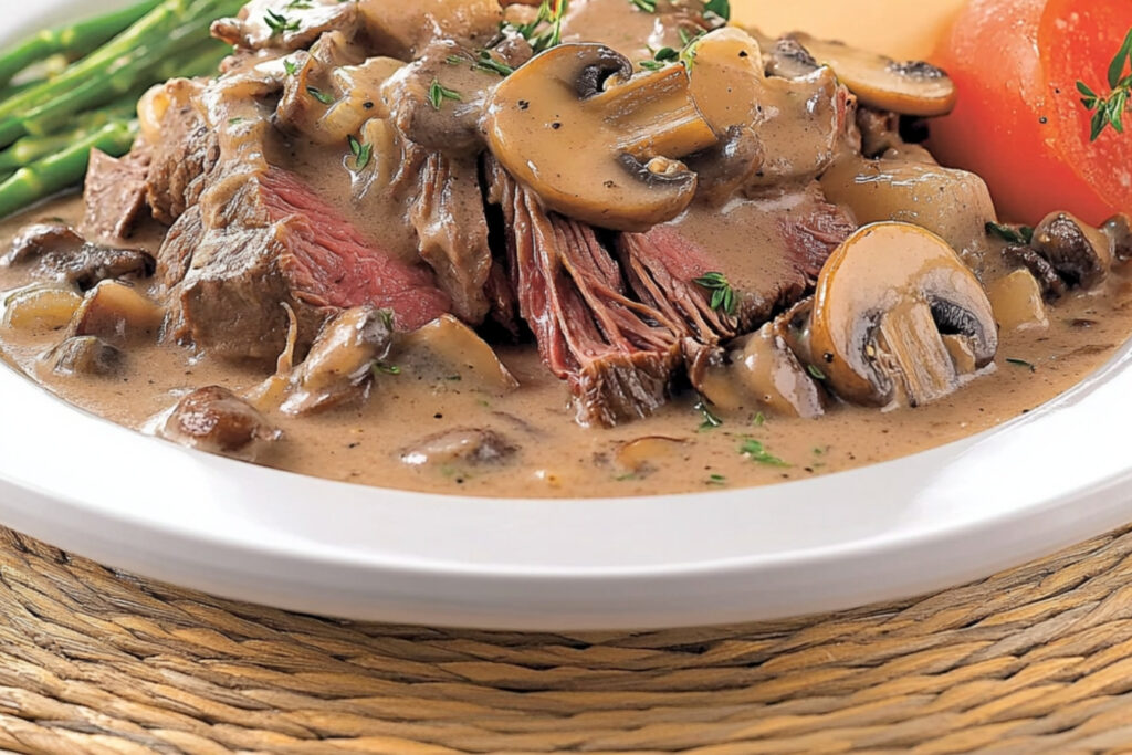 Le rôti de bœuf à la crème de champignons est une recette délicieuse et réconfortante qui ravira vos convives. Non seulement il est savoureux, mais il peut également être préparé à l’avance et congelé pour plus de commodité. Ce plat s’accompagne parfaitement de légumes ou de purée de pommes de terre, faisant de lui un choix idéal pour un repas en famille ou un dîner entre amis.