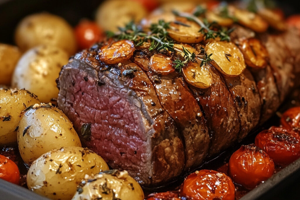 Le roule de rosbeef avec tomates à l’ail et grenaille au four est un plat savoureux et réconfortant, parfait pour les repas en famille ou entre amis. Cette recette allie la tendreté de la viande avec la douceur des tomates et le croquant des petites pommes de terre, offrant une expérience culinaire inoubliable.