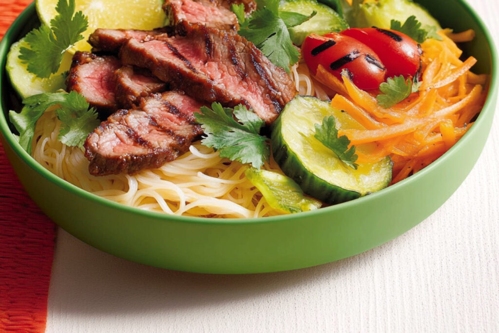 Cette salade au boeuf grillé et vermicelles est non seulement rapide à préparer, mais elle est aussi parfaite pour les journées chargées, tout en étant nourrissante et délicieuse. Bon appétit !
