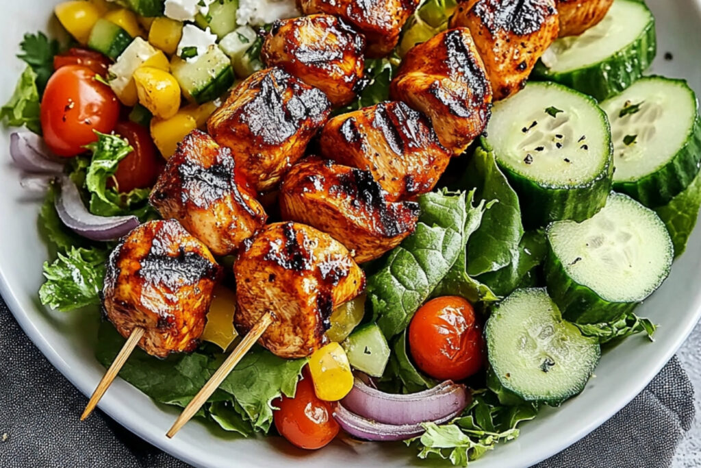 Cette salade de brochettes de poulet BBQ est un plat délicieux et rafraîchissant, parfait pour les journées ensoleillées. Avec la combinaison de poulet juteux, de légumes croquants et de vinaigrette savoureuse, elle ne manquera pas de ravir vos invités. N’hésitez pas à personnaliser les ingrédients selon vos goûts pour en faire un repas encore plus spécial.