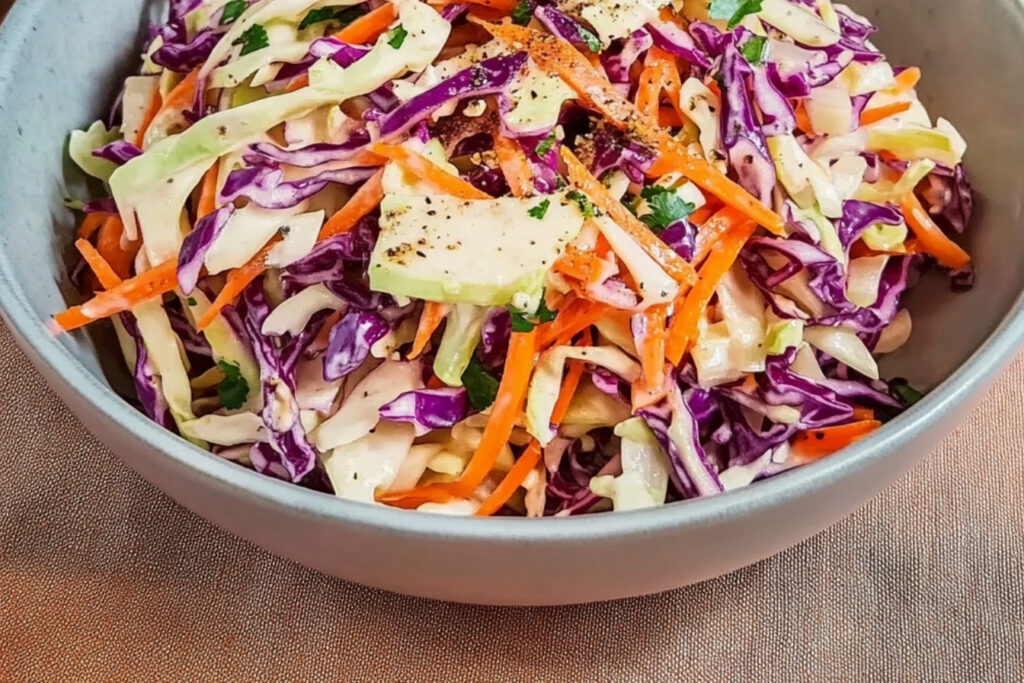 Cette vinaigrette coleslaw est le complément parfait pour vos repas estivaux, offrant une belle harmonie de saveurs et de textures. Profitez-en !