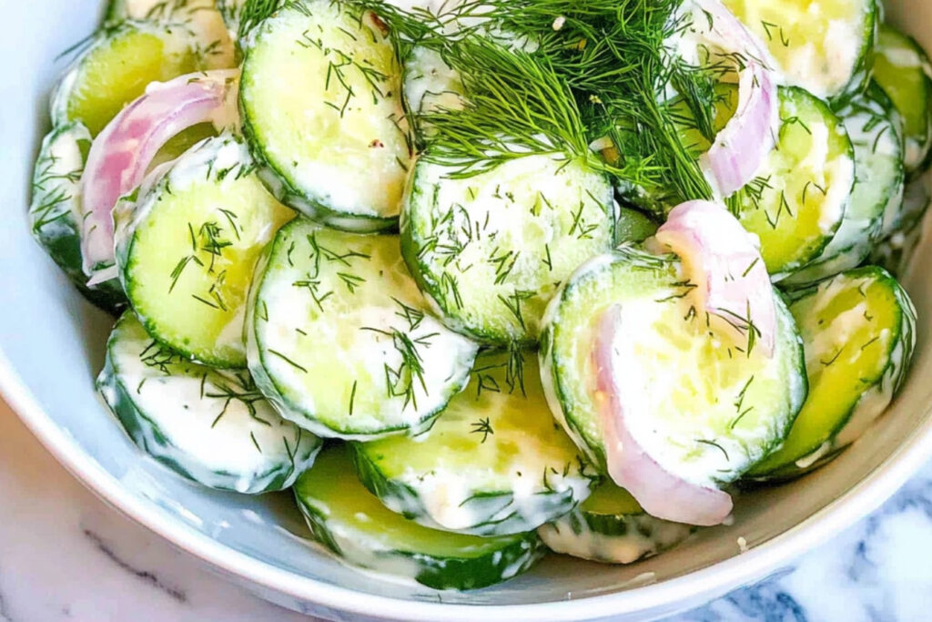 Cette salade de concombre crémeuse est non seulement rapide à préparer, mais elle constitue également un accompagnement léger et savoureux pour n’importe quel plat principal. Profitez de chaque bouchée !