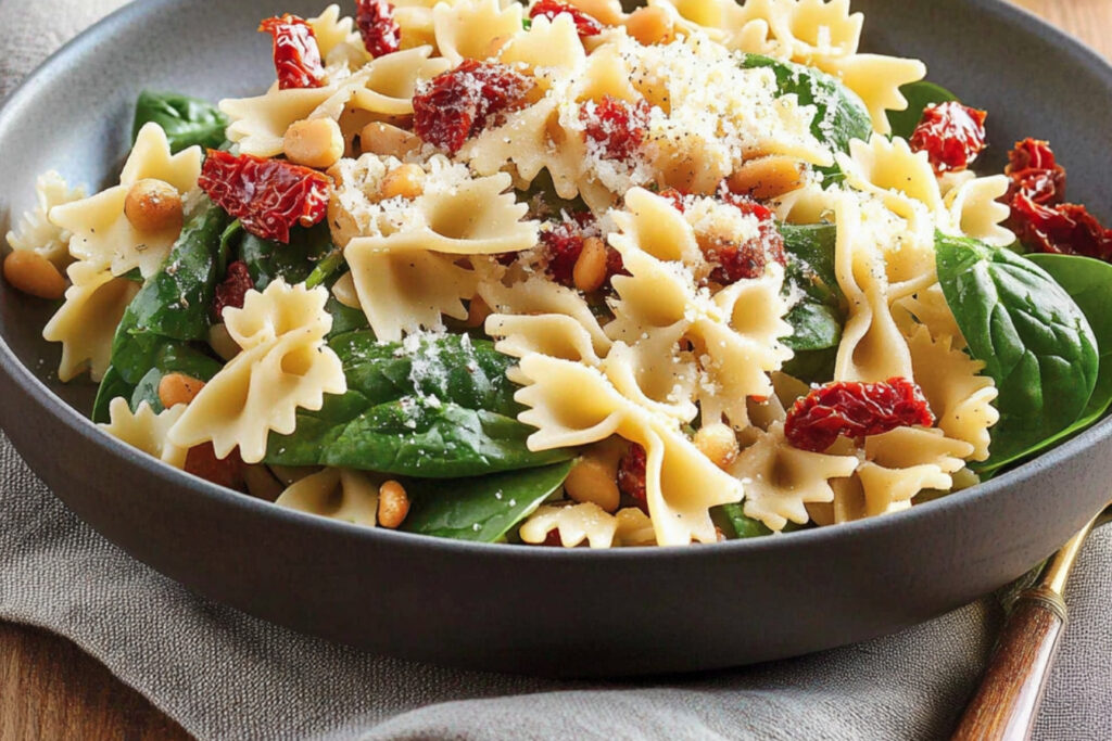 La salade de pâtes aux épinards, fromage et tomates sèches est un plat savoureux et équilibré qui peut être préparé en un rien de temps. C’est une excellente option pour un déjeuner léger ou un dîner rapide. Sa combinaison de saveurs et sa simplicité en font un choix parfait pour les jours où le temps est compté.