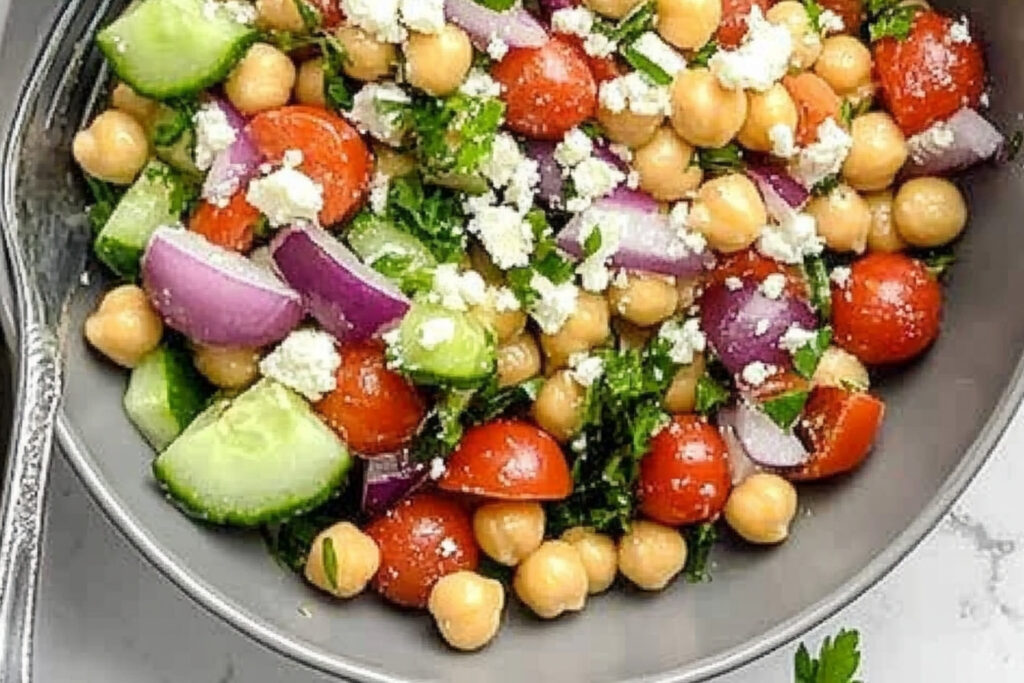 Cette salade méditerranéenne de pois chiches est un plat délicieux et nutritif qui peut être savouré seul ou en accompagnement. Ses saveurs fraîches et ses textures variées en font une option idéale pour un déjeuner ou un dîner léger. N’hésitez pas à l’adapter selon vos goûts et à expérimenter avec différents ingrédients pour créer votre version parfaite.