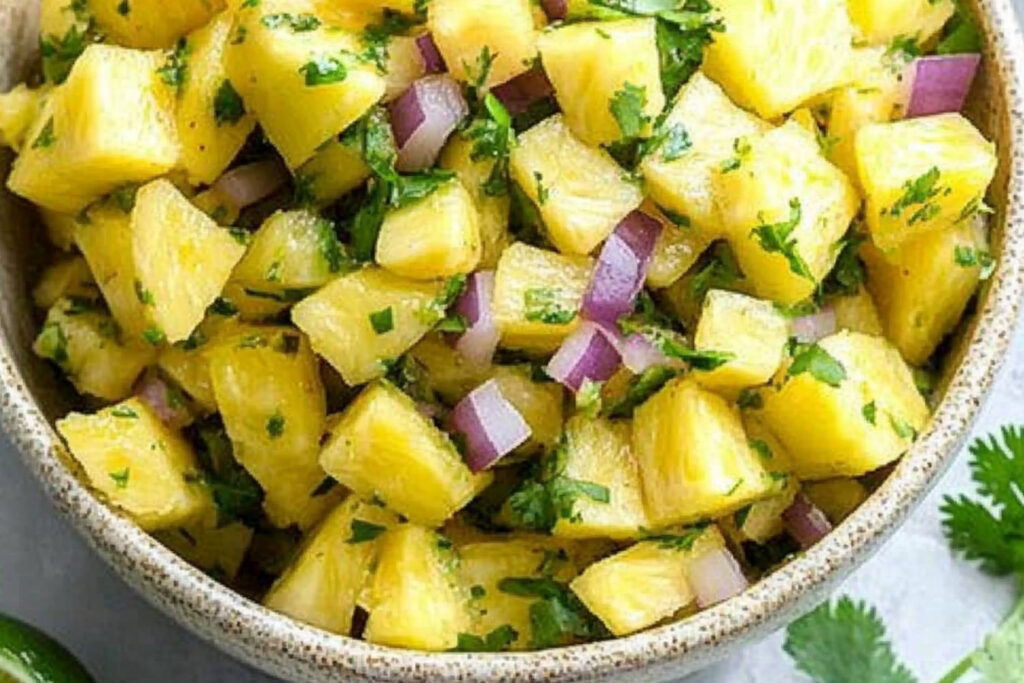 La salsa d’ananas est un mélange rafraîchissant et vibrant qui rehausse n’importe quel plat. Que ce soit pour accompagner des tacos, des grillades ou même du poisson, cette salsa apporte une touche sucrée et acidulée qui ravira vos papilles. N’hésitez pas à ajuster les ingrédients selon vos préférences personnelles pour créer la version parfaite pour vous.